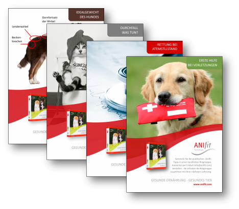 Auf festen Karten hat Anifit wichtige Themen rund um Hunde und Katzen in kurzer, prägnanter Weise für seine Kunden zusammengefasst. Die Karten werden abwechselnd als Beilage in die Pakte für die Kunden eingelegt.